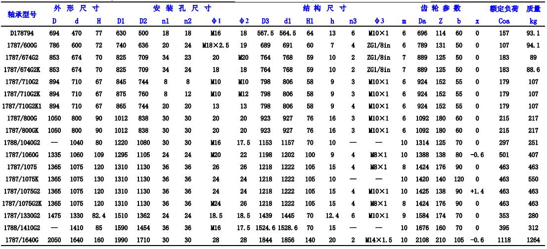 轉(zhuǎn)盤軸承根據(jù)不同的結(jié)構(gòu)點可分別滿足各種不同負(fù)荷條件下工作主機的需求。其中,四點接觸球轉(zhuǎn)盤軸承具有較高的動負(fù)荷能力,交叉圓柱滾子轉(zhuǎn)盤軸承具有較高的靜負(fù)荷能力,三排圓柱滾子組合轉(zhuǎn)盤軸承由于把承載能力的提高引向軸承的高度方向,各種載荷分別由不同滾道和滾子組承受,因此在同等受力條件下,其滾道的直徑大大縮小,具有使主機更為緊湊的點,是種高承載能力的轉(zhuǎn)盤軸承。